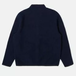 Grazie a questa tecnica di tessitura, si ottiene un tessuto in cui lana e cotone si intrecciano, creando una sensazione incredibile quando indossato. Da notare il particolare effetto cromatico ottenuto sul rovescio, intrecciando il filo blu a quello tinto in verde militare