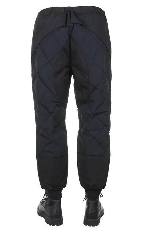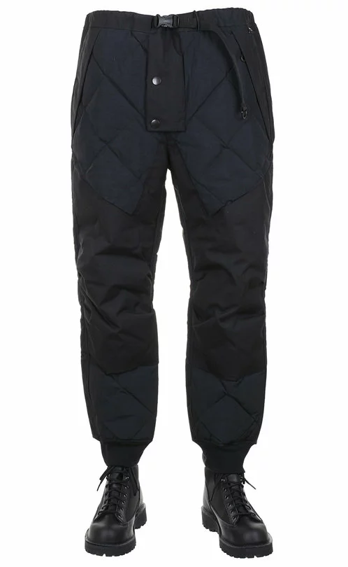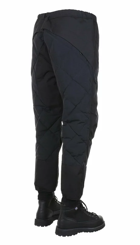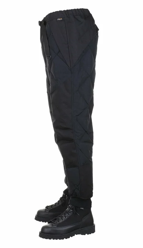 The Field Down Pants by Norbit are a quilted cold weather utility trouser. Made up in a mix of Cordura nylon the pants are fully quilted and feature an elasticated waistband with a nylon belt and QR buckle, two front zip pockets, two rear zip pockets, reinforced knee detail and elasticated knit cuffs.