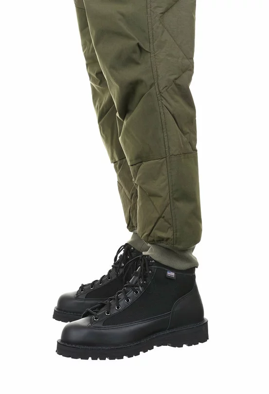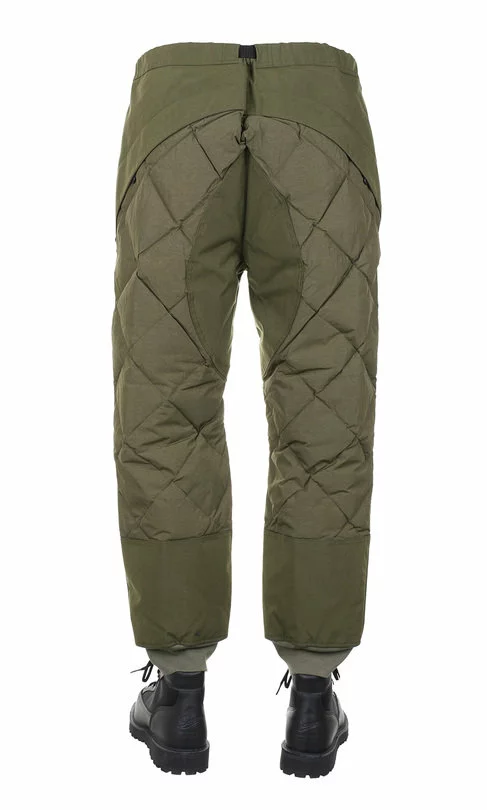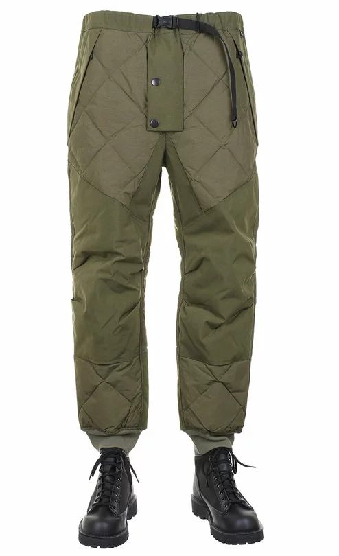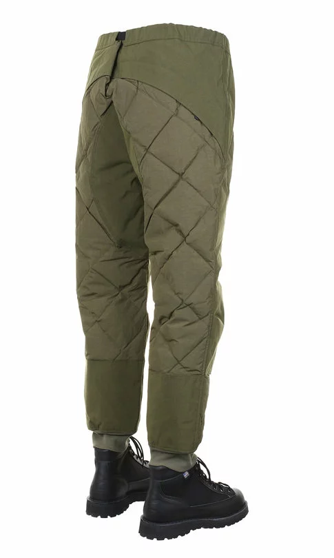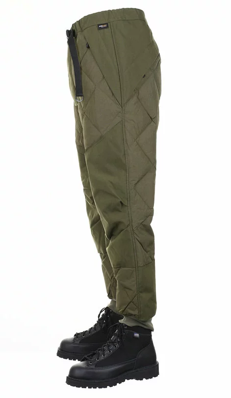 The Field Down Pants by Norbit are a quilted cold weather utility trouser. Made up in a mix of Cordura nylon the pants are fully quilted and feature an elasticated waistband with a nylon belt and QR buckle, two front zip pockets, two rear zip pockets, reinforced knee detail and elasticated knit cuffs.