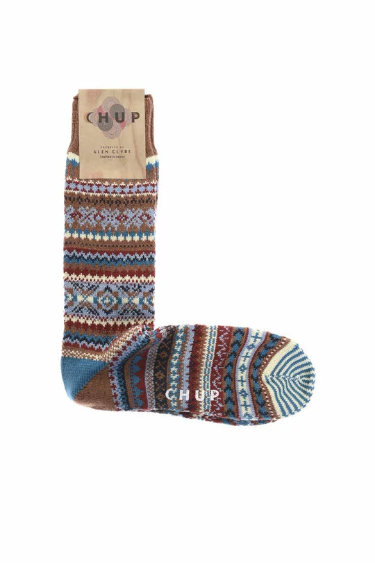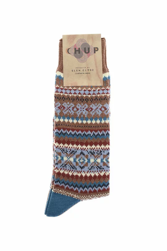 Chup socks are made by Japanese textile experts Glen Clyde. Handmade in Japan by expert craftsmen, the attention to detail is remarkable. Made from the finest textiles, the Hygge is a crew style with a Jaquard knit pattern and a hand linked toe.