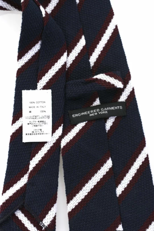 The Knit Tie Stripe by Engineered Garments is a high quality classic cotton knit tie. Features on the tie include a three and a half inch blade and edge finish details at the ends.