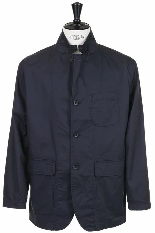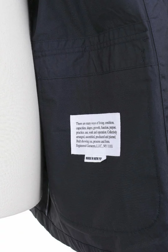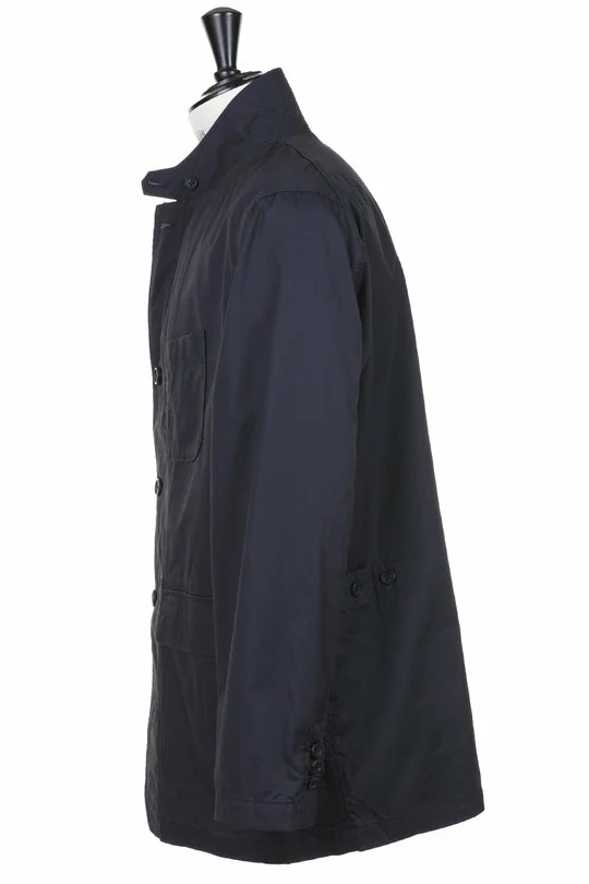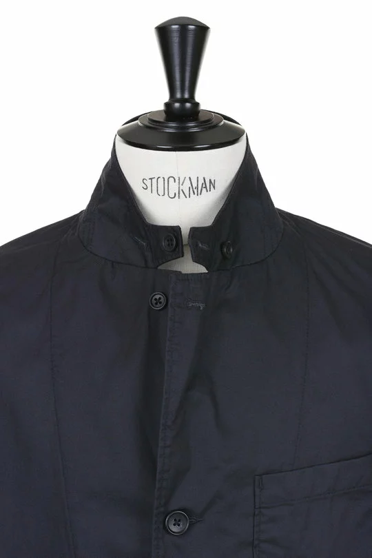 The Loiter Jacket Highcount Twill by Engineered Garments is a super relaxed sport coat. Made up in super highcount cotton twill the jacket features a three button front, storm tab button collar, single chest pocket, two lower patch pockets with flaps, strap and button side adjusters and working cuffs.