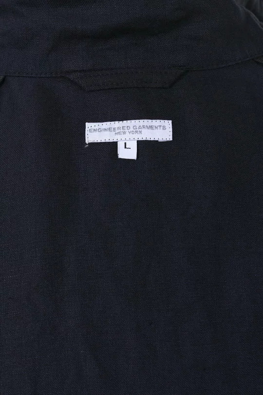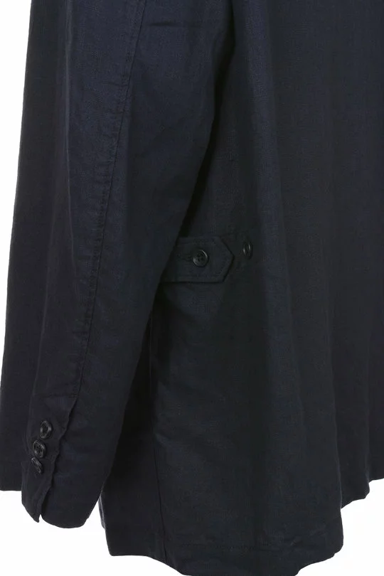 The Loiter Jacket Linen Twill by Engineered Garments is a super relaxed sport coat. Made up in soft washed linen the jacket features a three button front, storm tab button collar, single chest pocket, two lower patch pockets with flaps, strap and button side adjusters and working cuffs.