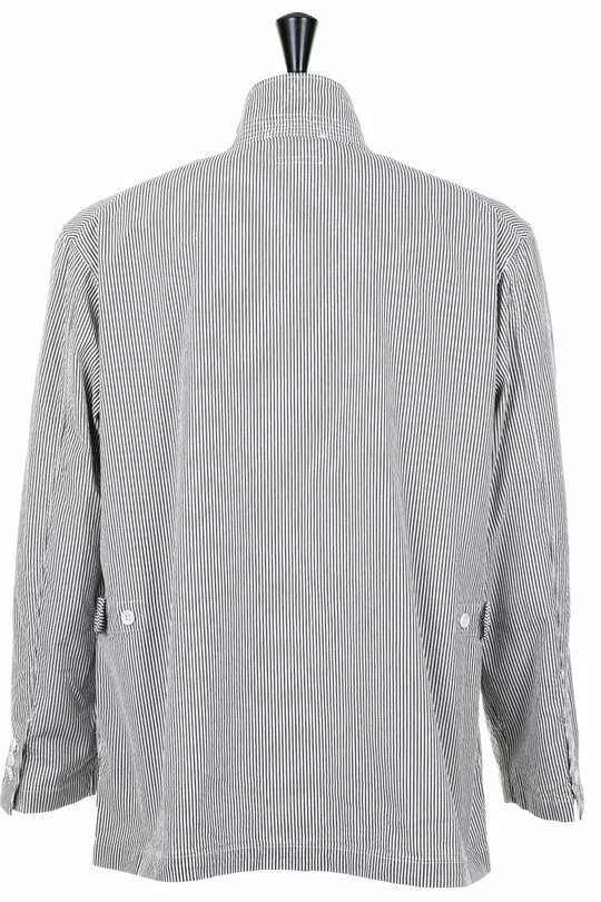 The Loiter Jacket Seersucker Stripe by Engineered Garments is a super relaxed sport coat. Made up in classic Summer Seersucker the jacket features a three button front, storm tab button collar, single chest pocket, two lower patch pockets with flaps, strap and button side adjusters and working cuffs.