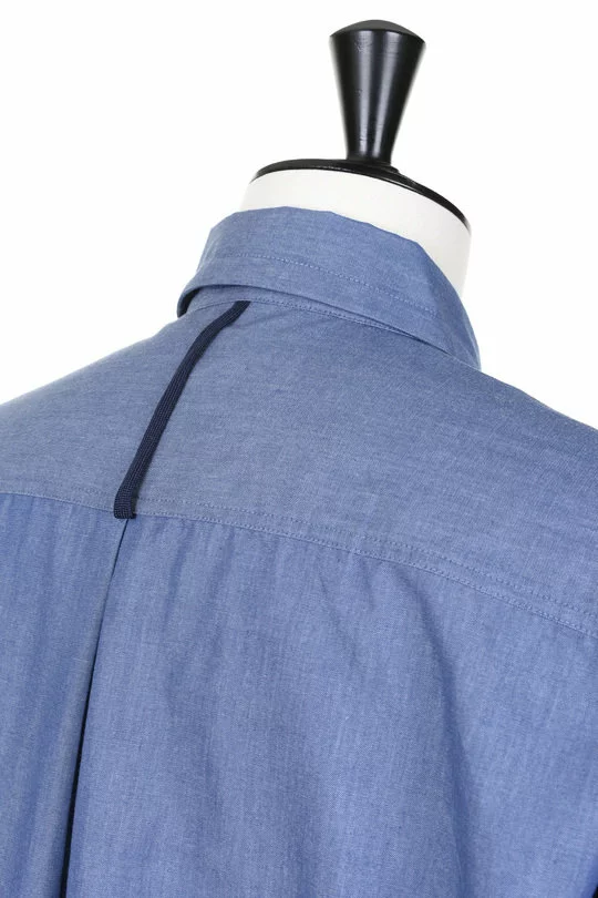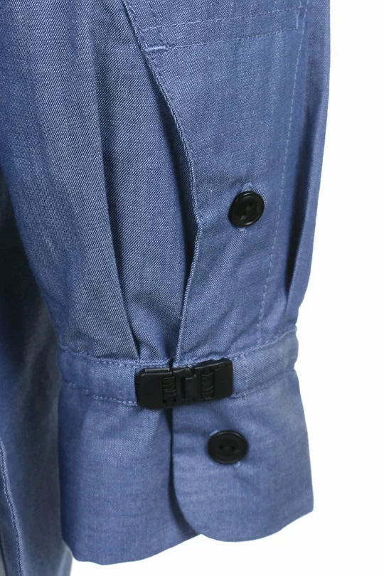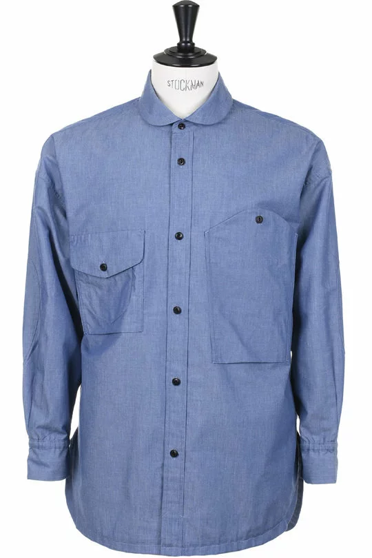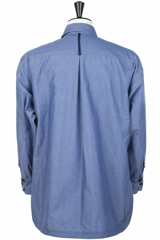 The P/C Chambray Shirt by Norbit takes reference from historical worker shirts. Made up in a hard wearing polycotton the shirt has an easy fit and features a rounded collar, a full button front, two large chest pockets with button fasten, a large rear hang loop, button and clip cuffs and a curved hem.
