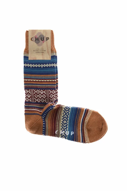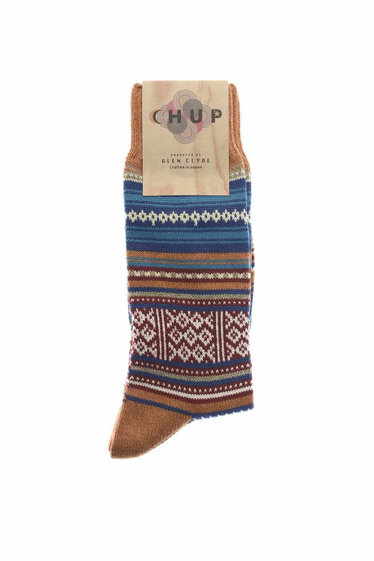 Chup socks are made by Japanese textile experts Glen Clyde. Handmade in Japan by expert craftsmen, the attention to detail is remarkable. Made from the finest textiles, the Pano is a crew style with a Jaquard knit pattern and a hand linked toe.