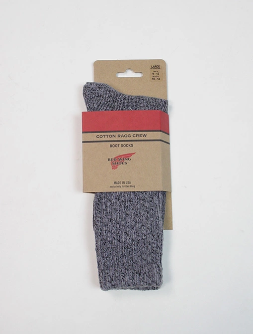 La Cotton Ragg Crew utilizza una tecnica di ritorcitura del filato Ragg che viene definita utilizzando due diversi filati tinti per ottenere un aspetto “marmorizzato” finito a maglia. Questa è una calza a maglia piatta con una cucitura di traino a maglia piatta che si trova più vicino al piede e può essere indossata in tutte le stagioni.