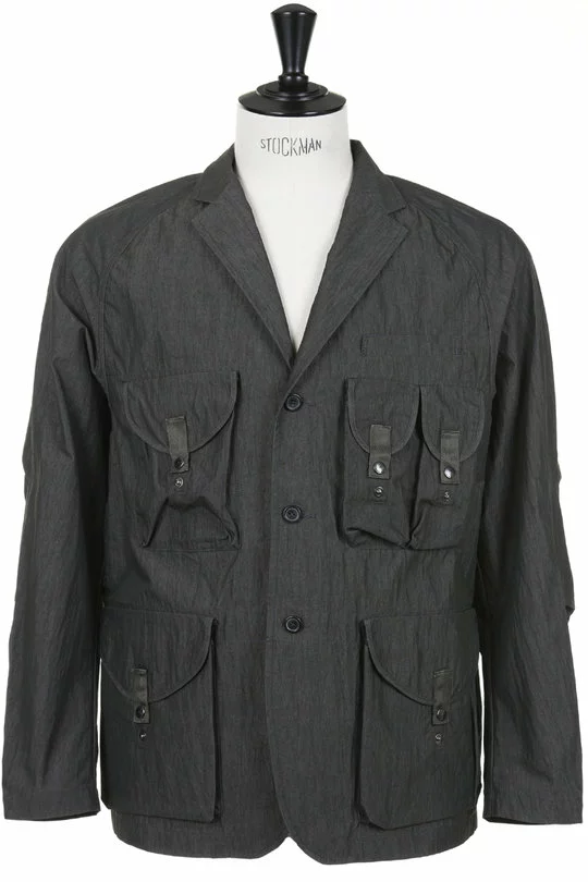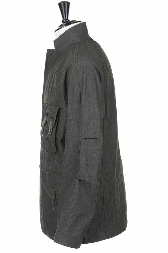 The Trekking Jacket by Eastlogue is inspired by Vintage Explorer styles. The jacket is crafted in a NyCo crinkle fabric and features a three button front, multi pocket set up with flaps and snaps and articulation detail at elbow area.